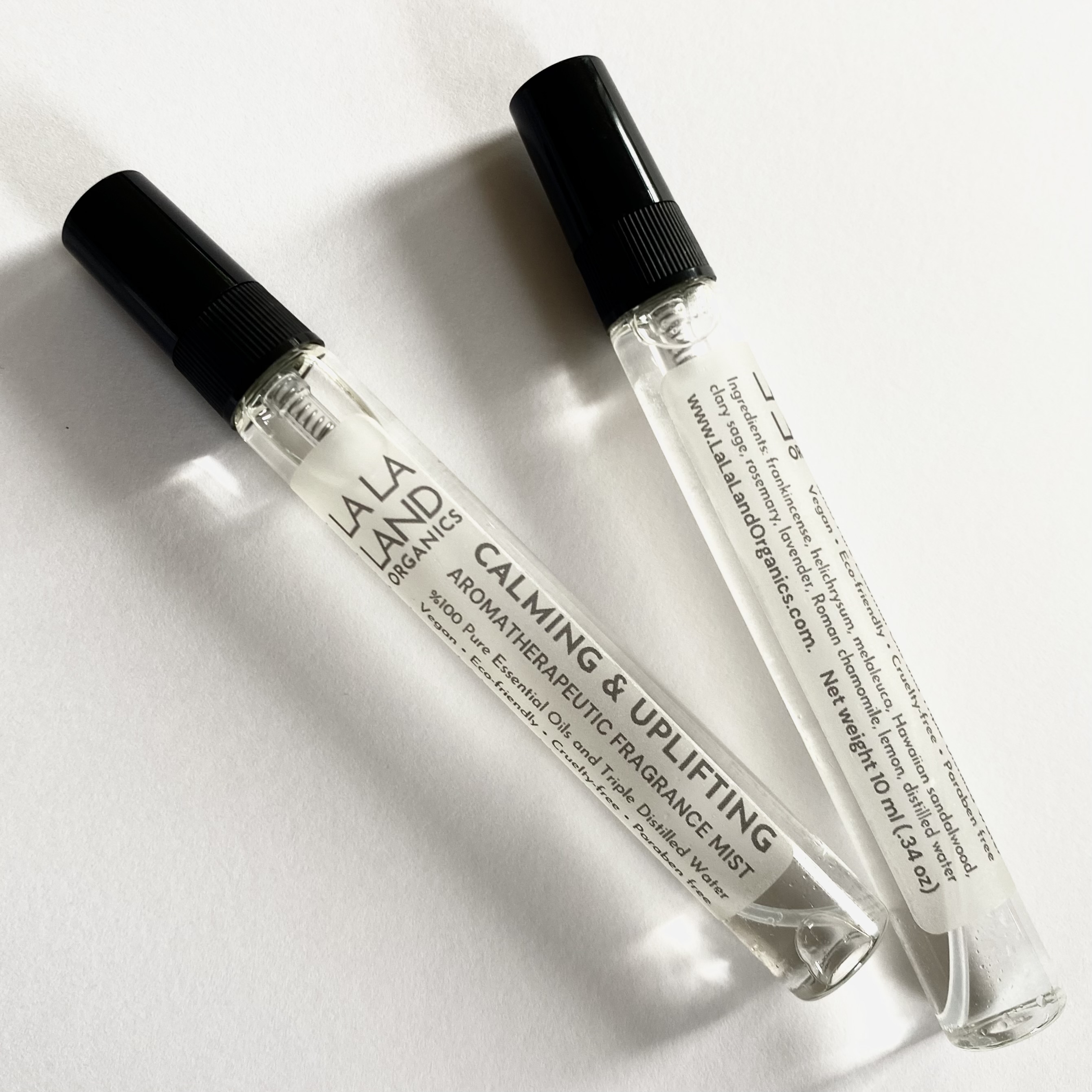 Reset and rejuvenate with La La Land Organics Calming & Uplifting Aromatherapeutic Frangrance Mist made with 100% Doterra (Certified Pure Tested Grade /CPTG) essential oils and triple distilled water.